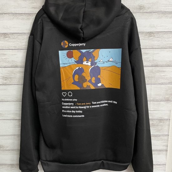 韓国 秋冬 トムとジェリー Instagram パーカー スウェット 黒 長袖