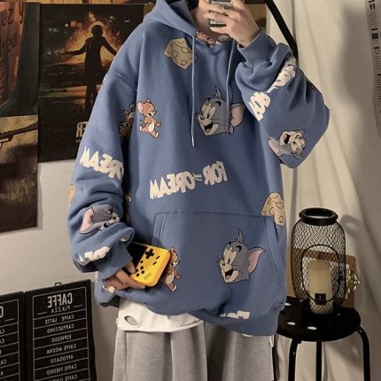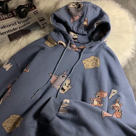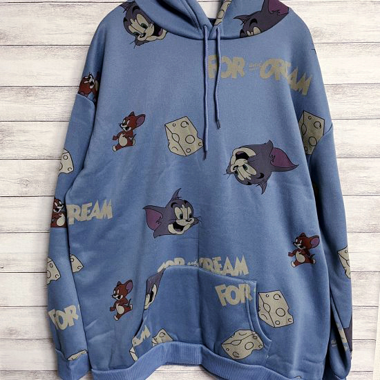 トムとジェリーフードパーカー ブルー