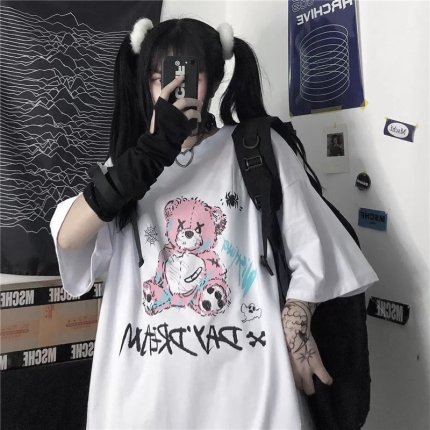 くま ベア 半袖 Tシャツ 病みかわ ゴスロリ 地雷系 原宿 ホワイト 白
