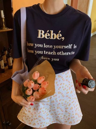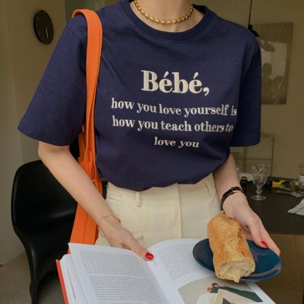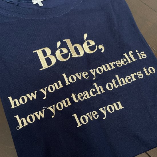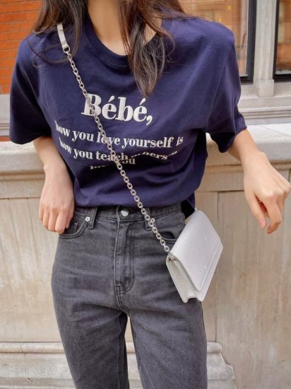 韓国 bebe 刺繍ロゴ 半袖 Tシャツ ネイビー