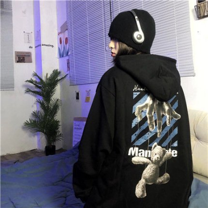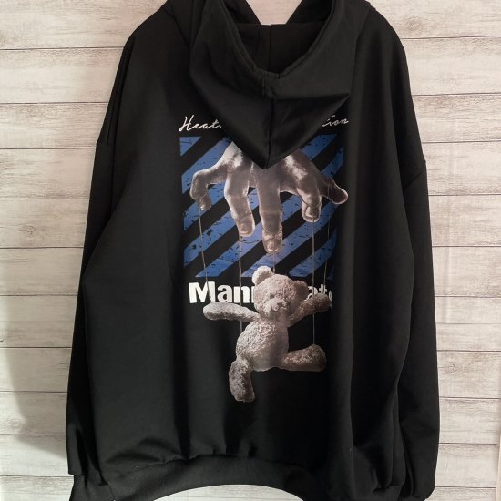 操りくま 病みかわ 量産型 ゴスロリ パンク フード パーカー 黒