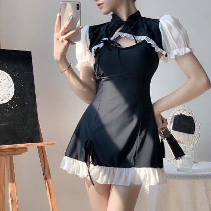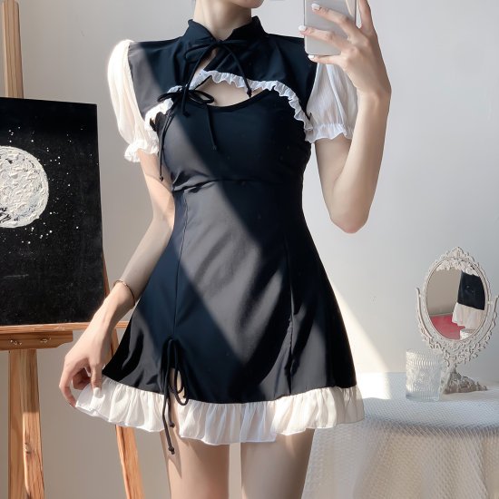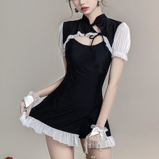 レディース 水着 フリル レース ワンピース 韓国 黒 オルちゃん
