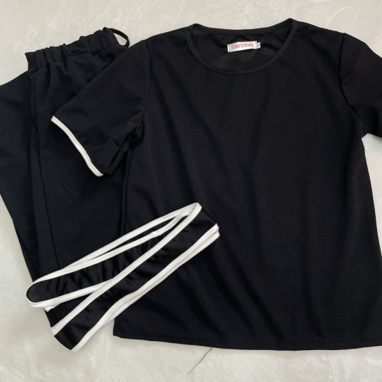 シンプルなモノトーンデザインでフリルやリボンをあしらった上品でオシャレなセットアップです♪